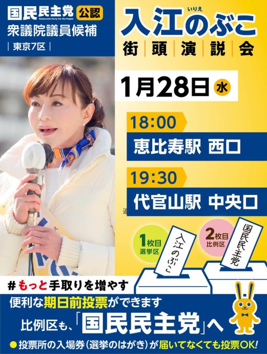 #入江のぶこ #国民民主党 #東京7区 #衆院選 手取りを増やす 恵比寿 代官山