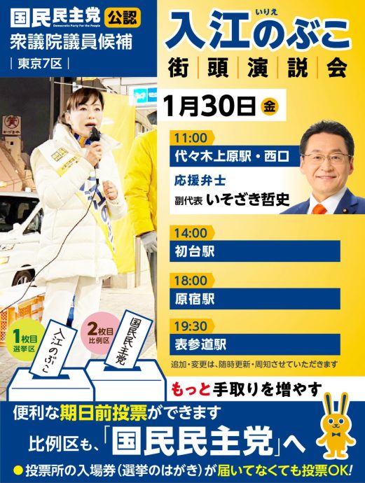 #衆院選2026 #国民民主党 #東京7区 #入江のぶこ
